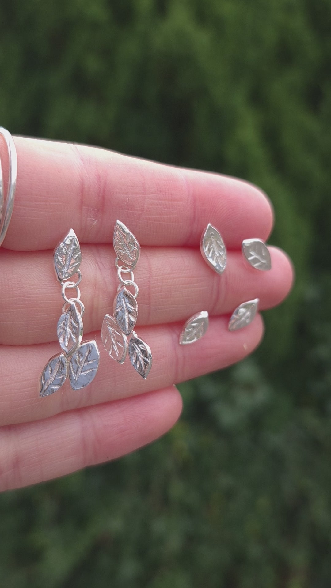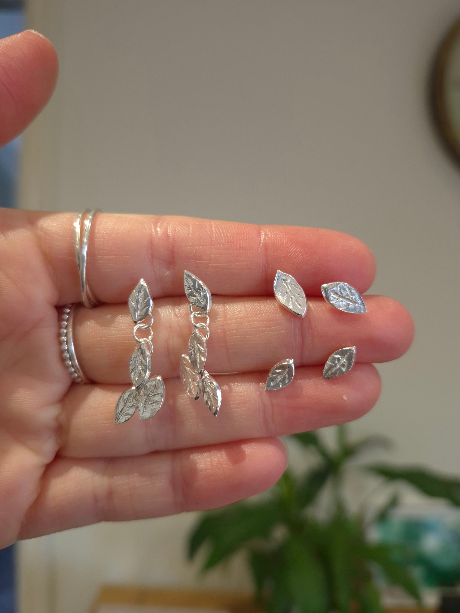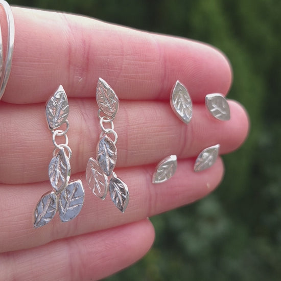 These beautiful leaf earrings were inspired by my 'flower' earrings in a similar design. Each leaf is handcrafted from silver metal clay, an organic material that, once fired, leaves us with 100% fine silver.