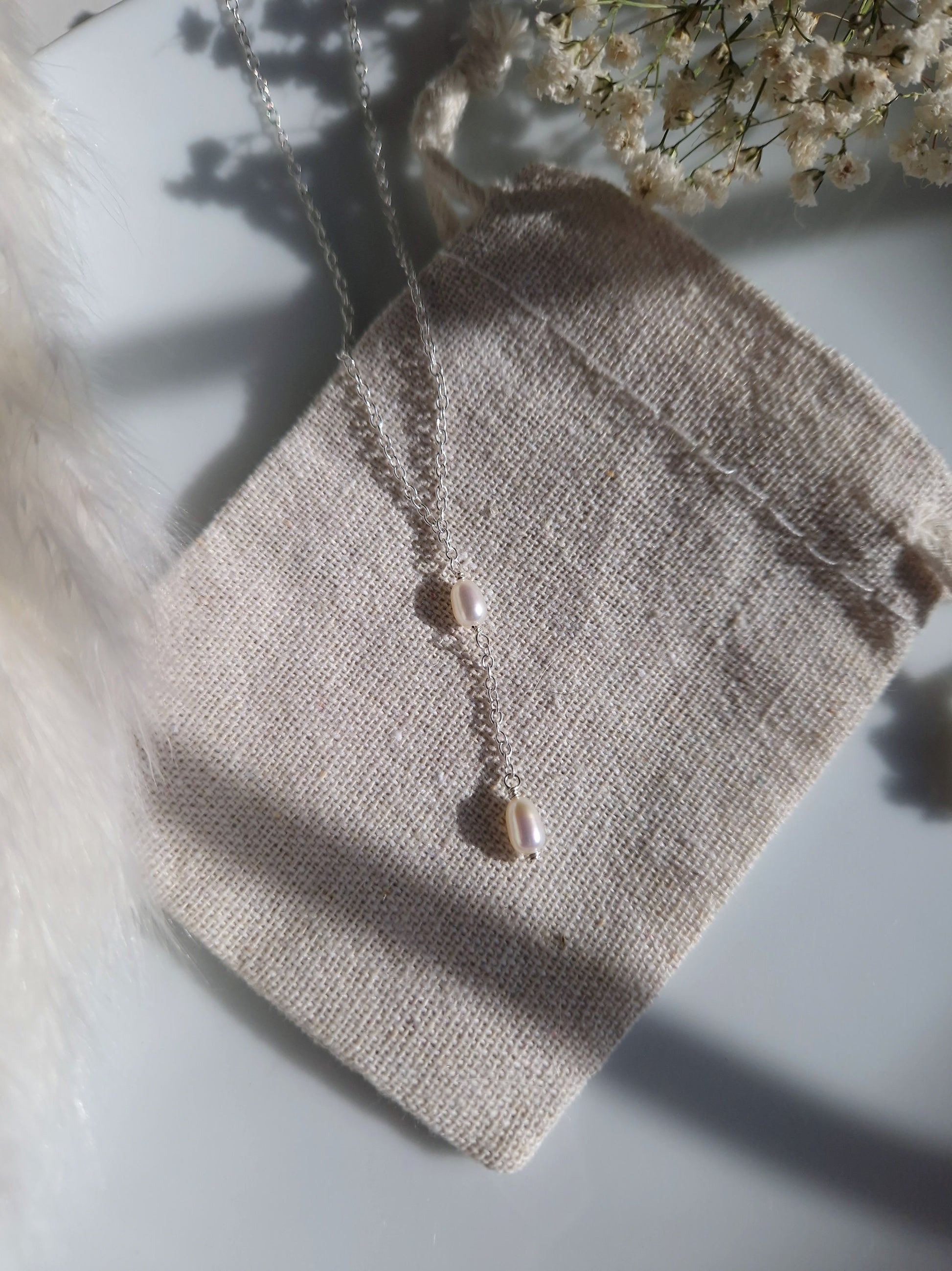 Hand made with beautiful grade A 4mm freshwater pearls, handwrapped onto delicate recycled sterling silver chain. This chain has a lovely bright shine to it.