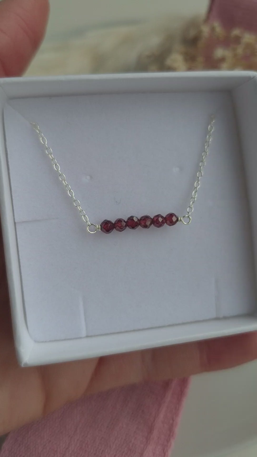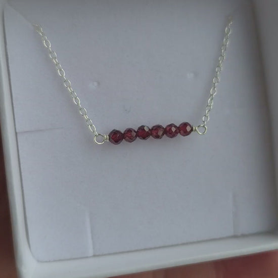 A simple necklace made from 2mm red garnet beads and sterling silver. Chain length is around 17 inches but can be adjusted if you message when you order.